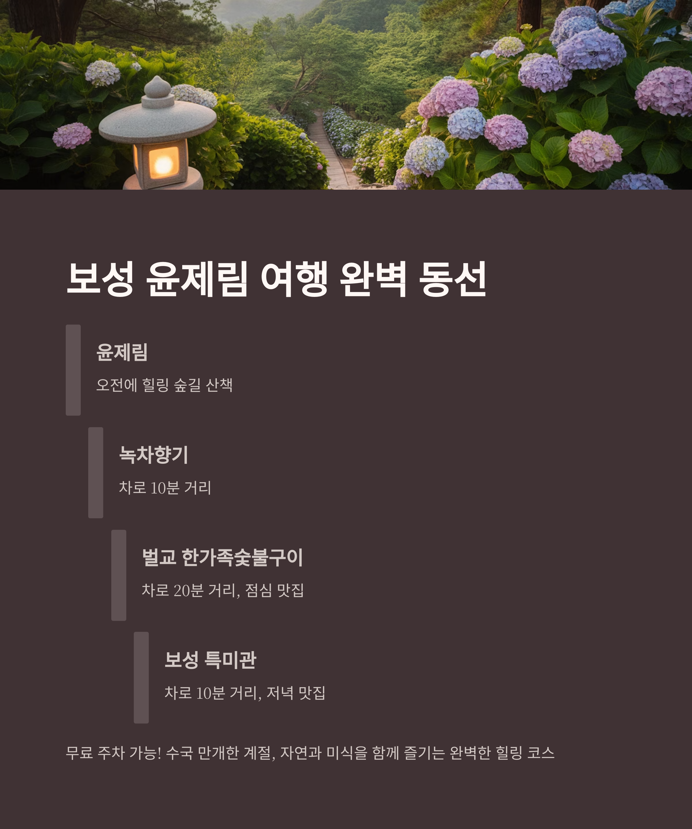 1. 윤제림: 편백숲과 수국길, 진짜 힐링의 시작