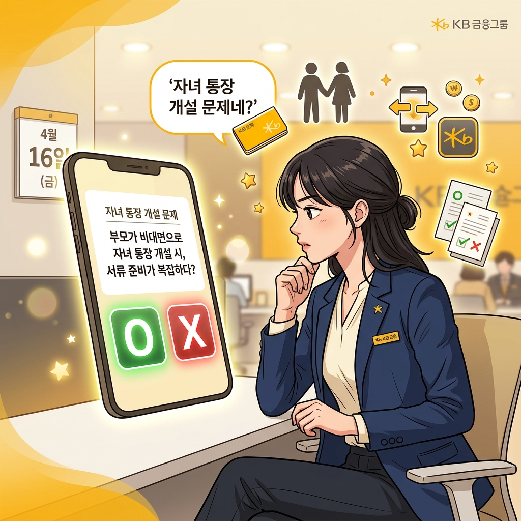 많은 분들이 궁금해했던 4월 16일 KB스타뱅킹 스타퀴즈 정답은 'O'였어요. 퀴즈 내용은 "KB스타뱅킹에서 자녀 통장 개설 및 인터넷뱅킹 가입까지 한 번에 가능하다"라는 질문이었는데요, 실제로 KB스타뱅킹 앱에서 이 모든 과정을 한 번에 처리할 수 있더라고요.