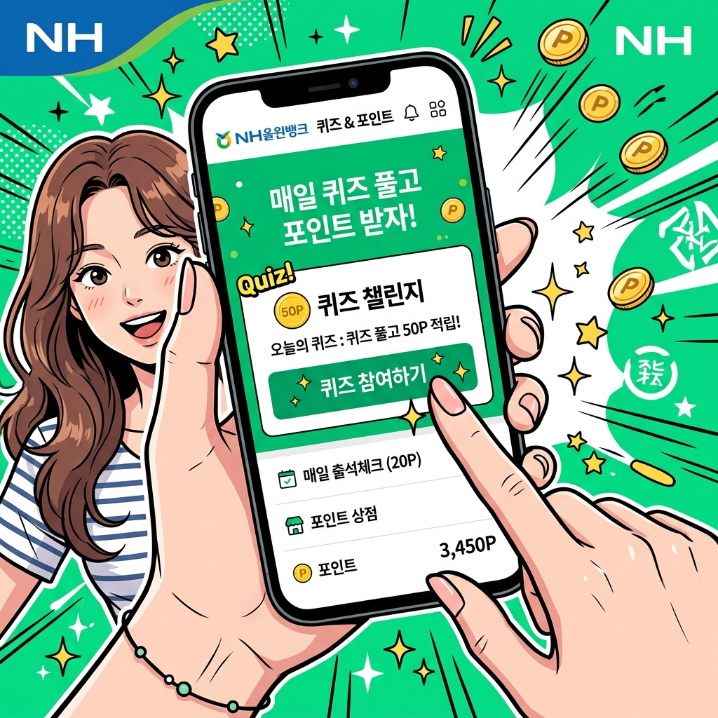 간단한 퀴즈만 풀어도 포인트가 쏠쏠하게 쌓이다 보니, 앱테크족들 사이에서는 완전 핫한 콘텐츠라네요. 실제로 많은 사람들이 NH올원뱅크를 통해 매일 소소한 즐거움을 얻고 있다고 입을 모아 말하대요.