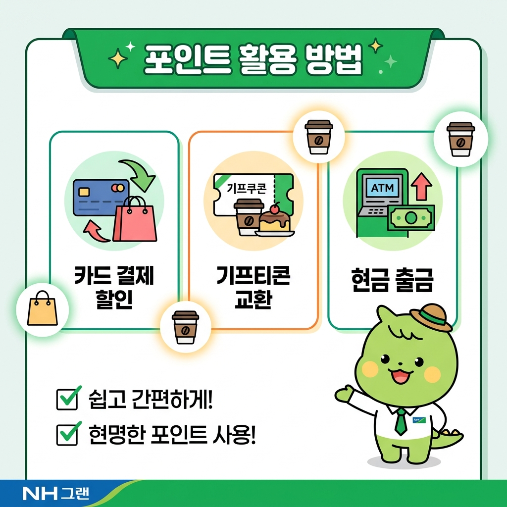 디깅퀴즈로 적립된 NH포인트는 다양한 방식으로 활용할 수 있어 매우 유용해요. 가장 기본적인 활용법은 농협 카드 결제 시 현금처럼 사용하는 것이에요.